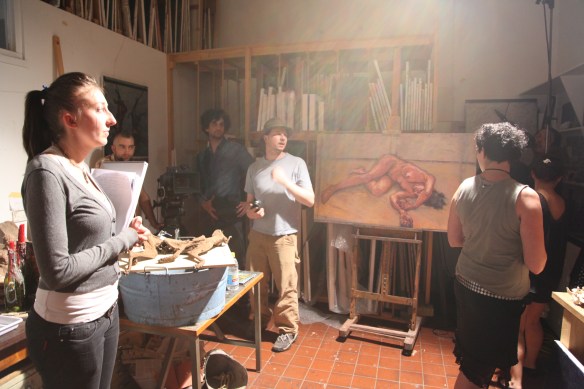 Actors Laura Wheelwright (Josie) and Fabiana Weiner (Samantha) with cinematographer Brendan Krotz and writer-director Adrian Goodman.